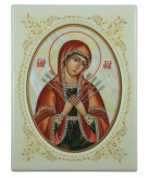 Икону можно поставить на стол либо повесить на стену, на ножке есть специальное отверстие.