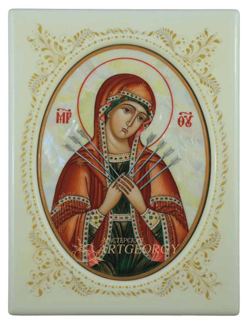 Семистрельный образ Богоматери созвучен с иконой «Умягчение злых сердец». Семь стрел обозначают семь пороков, которым подвержены души людей. Образ демонстрирует, как глубоко ранят Пресвятую Деву людские грехи и как сильно переживает она за каждого раба Божьего. Это значит и то, что Царице Небесной ведомы все помыслы, скрытые в человеческом сердце.